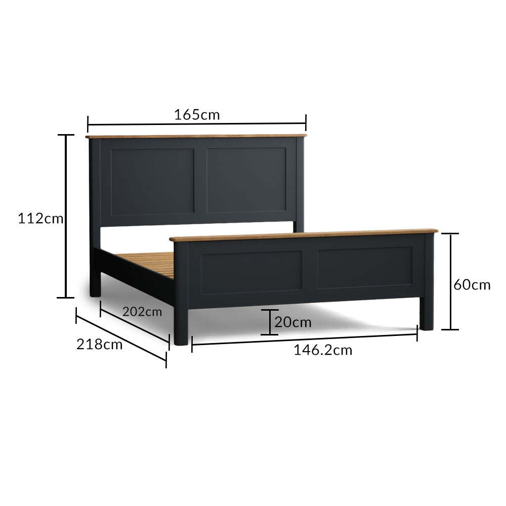 With stunning classic design details, the Ashton Kingsize Bed features a durable solid hardwood frame with a smooth blue painted finish, topped with 100% solid oak.