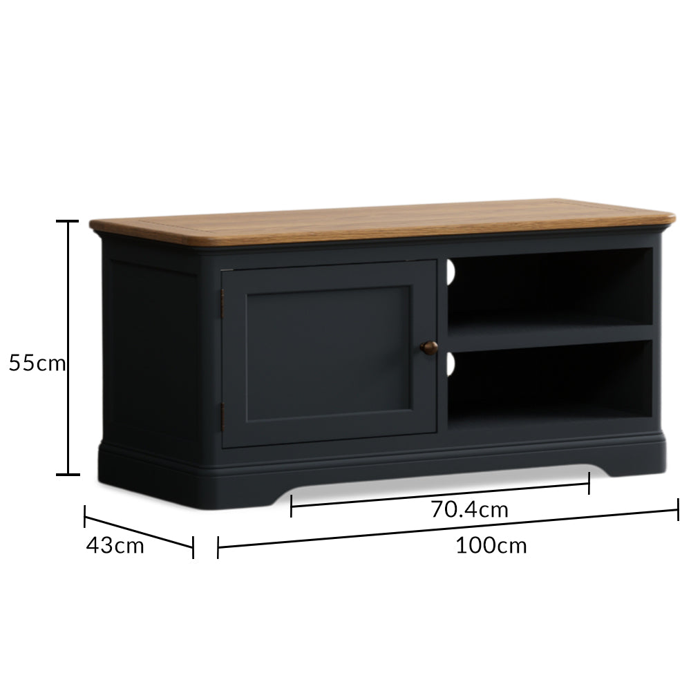 With stunning classic design details, the Ashton TV Cabinet features a durable solid hardwood frame with a smooth blue painted finish, topped with 100% solid oak.