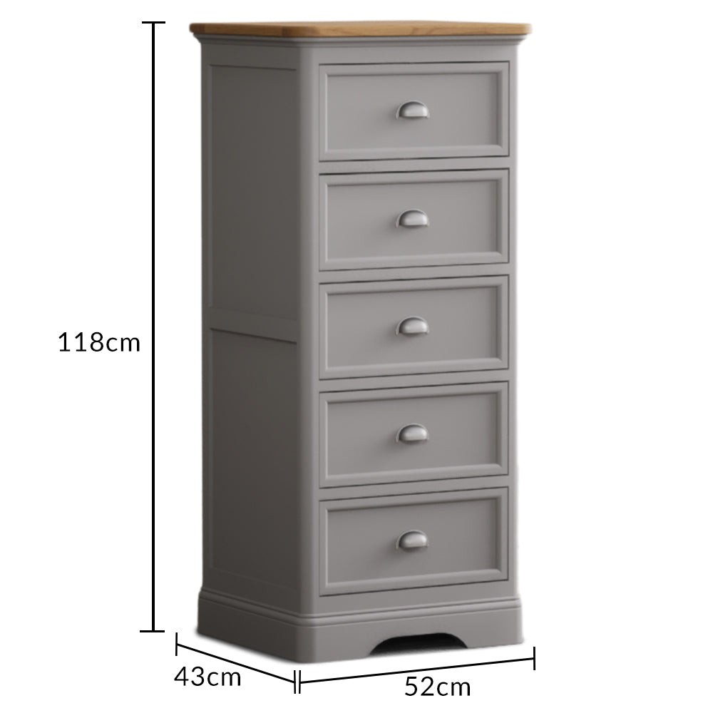 Ashton Oak and Light Grey Painted 5 Drawer Tallboy
