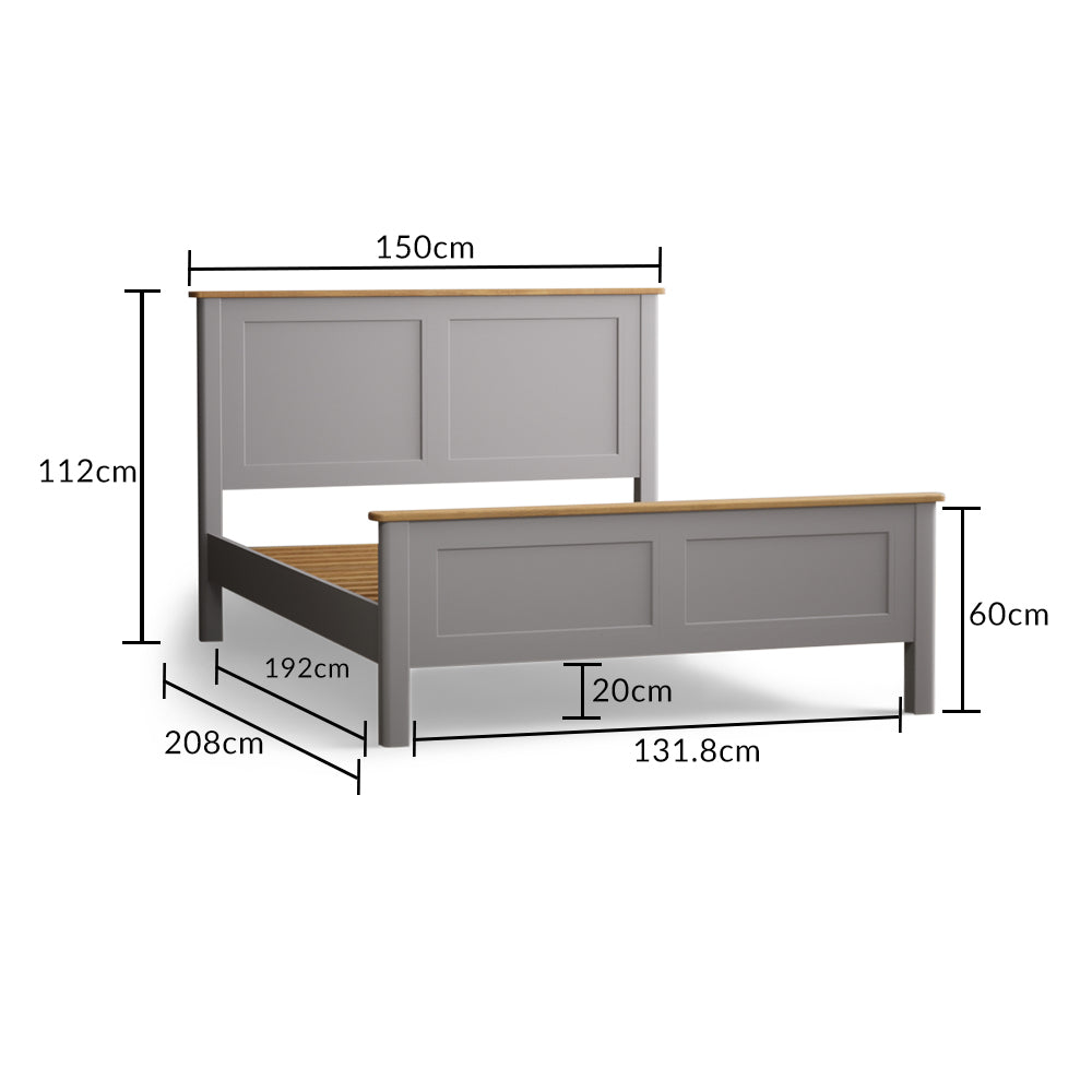 With stunning classic design details, the Ashton Double Bed features a durable solid hardwood frame with a smooth light grey painted finish, topped with 100% solid oak.