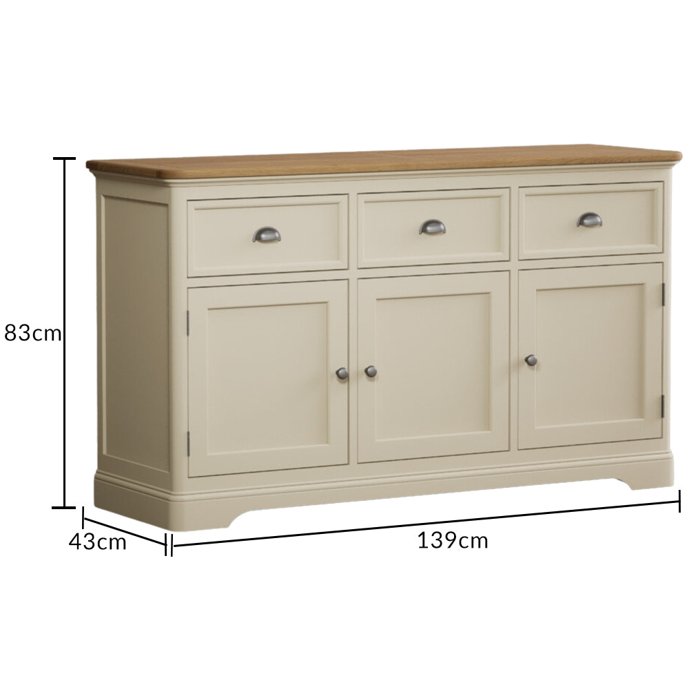 With stunning classic design details, the Ashton Dresser features a durable solid hardwood frame with a smooth cream painted finish, topped with 100% solid oak.