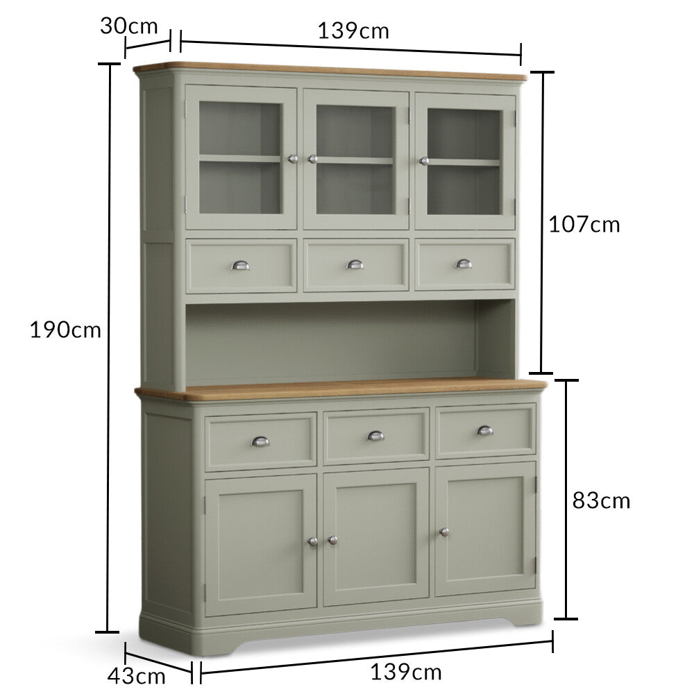 The Ashton Oak and Soft Green Collection is stylish & classic. Traditionally crafted with painted solid wood frames, solid backs & bases & 100% solid oak tops, with no veneer, MDF or chipboard used.