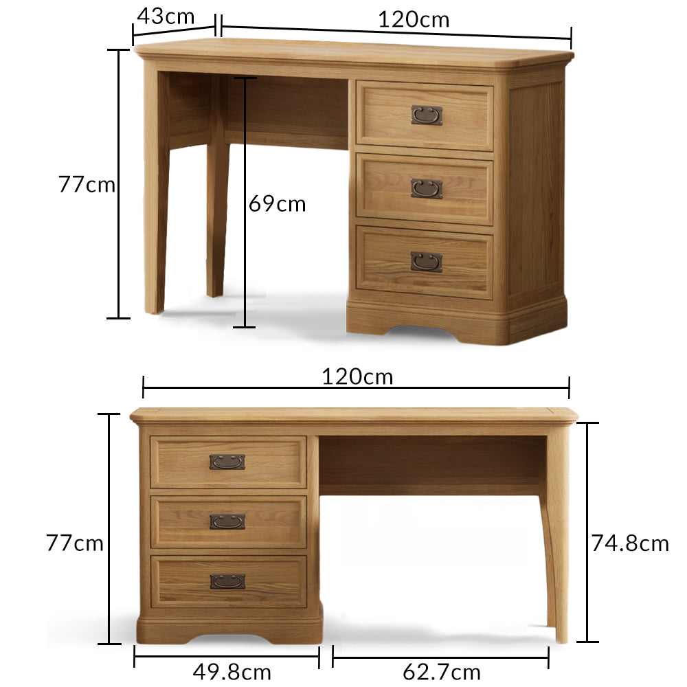 With stunning classic design details, the Ashton Dressing Table has been crafted from durable 100% solid oak, complete with a natural finish that highlights the natural depth of the wood grain.