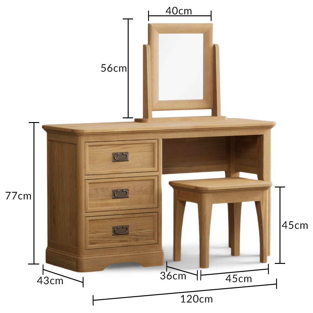 With stunning classic design details, the Ashton Dressing Table Set features a dressing table, mirror and stool, crafted from 100% solid oak.