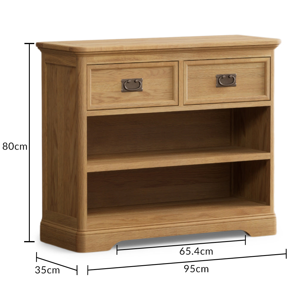 With stunning classic design details, the Ashton Storage Console Table has been crafted from durable 100% solid oak, complete with a natural finish that highlights the natural depth of the wood grain.