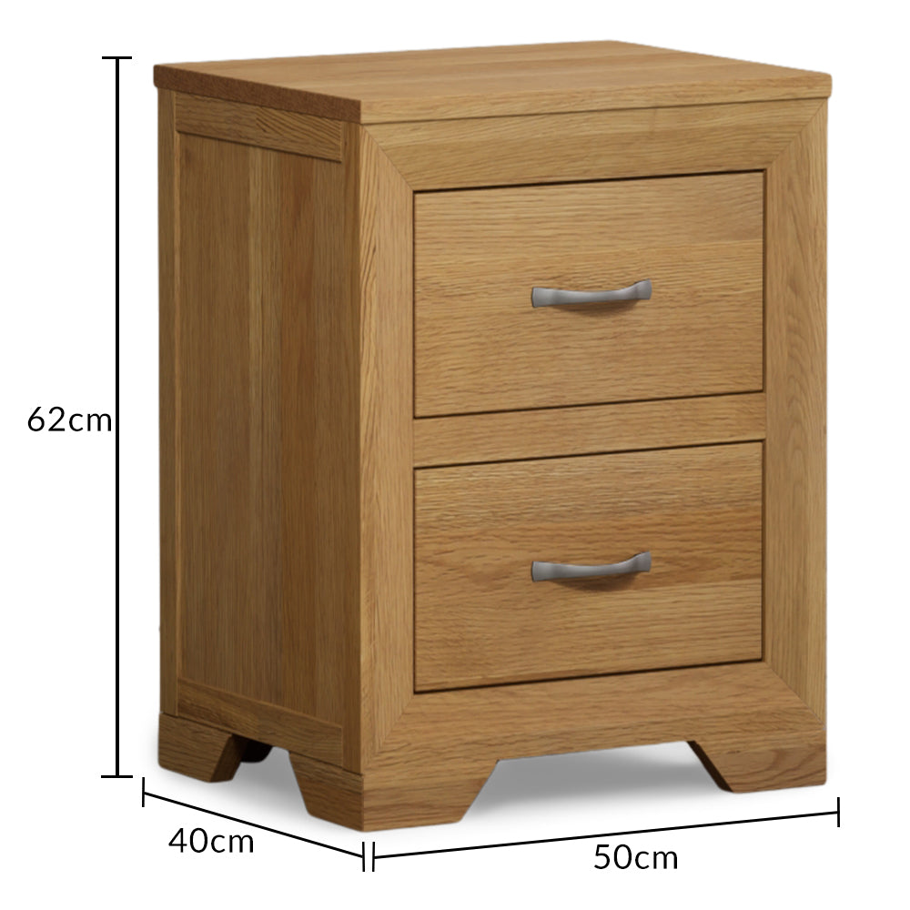 Bellingham Solid Oak 2 Drawer Bedside Chest