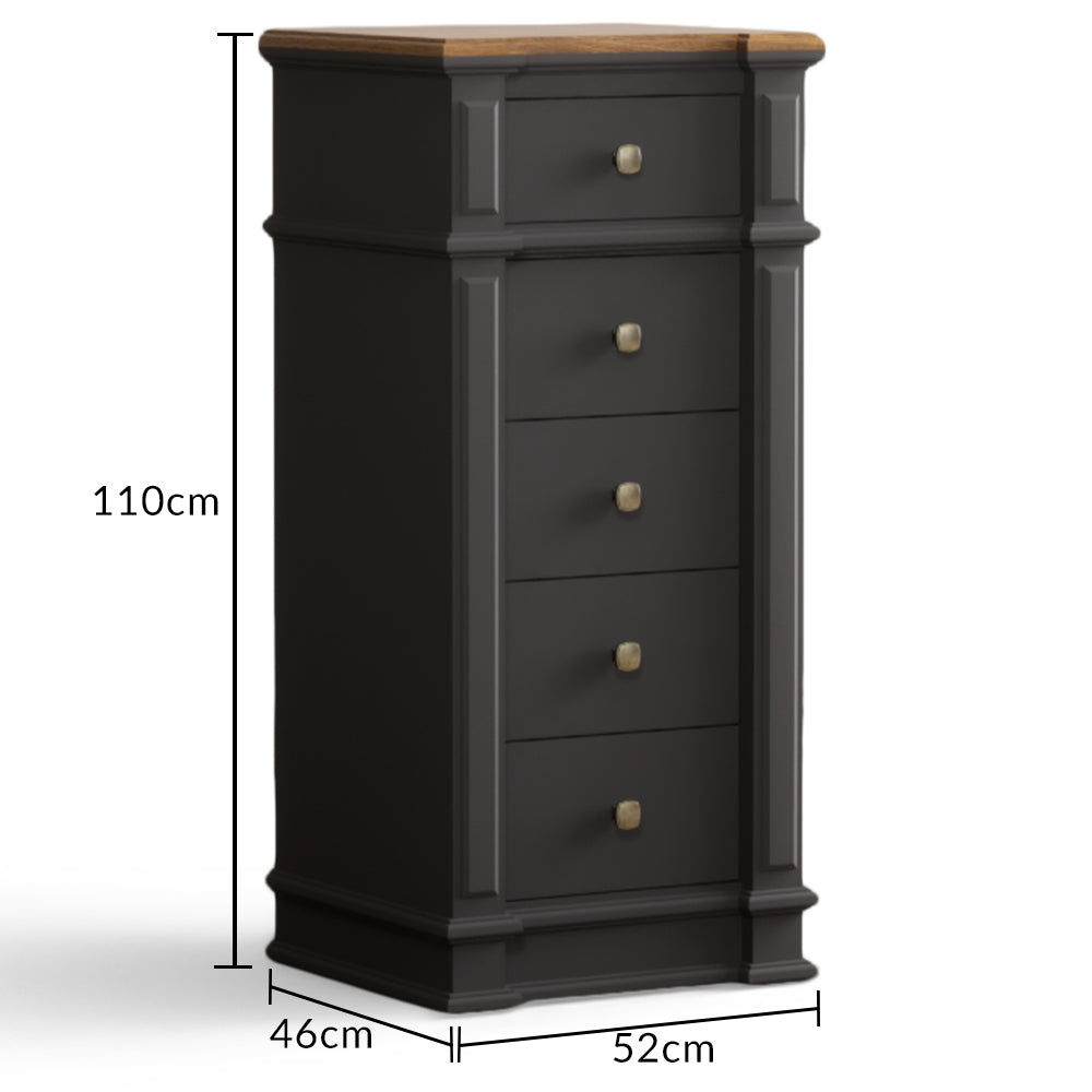 Bewley Oak and Charcoal Grey Painted 5 Drawer Tallboy