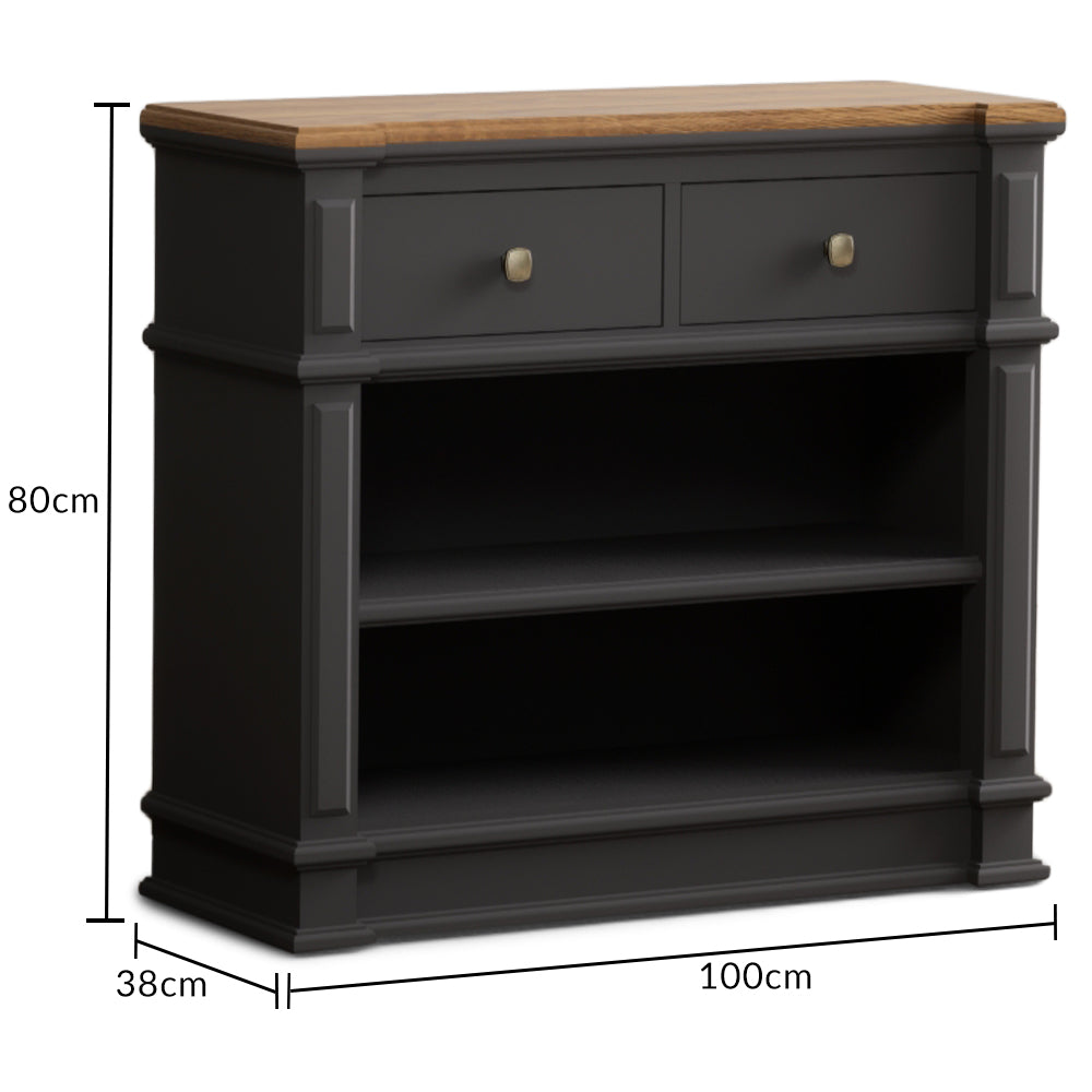 The Bewley Oak and Charcoal Grey Painted Console Table features charcoal grey painted solid hardwood frames with 100% solid oak tops. Every item in this collection is crafted from 100% solid wood, with no veneer, MDF or chipboard used.