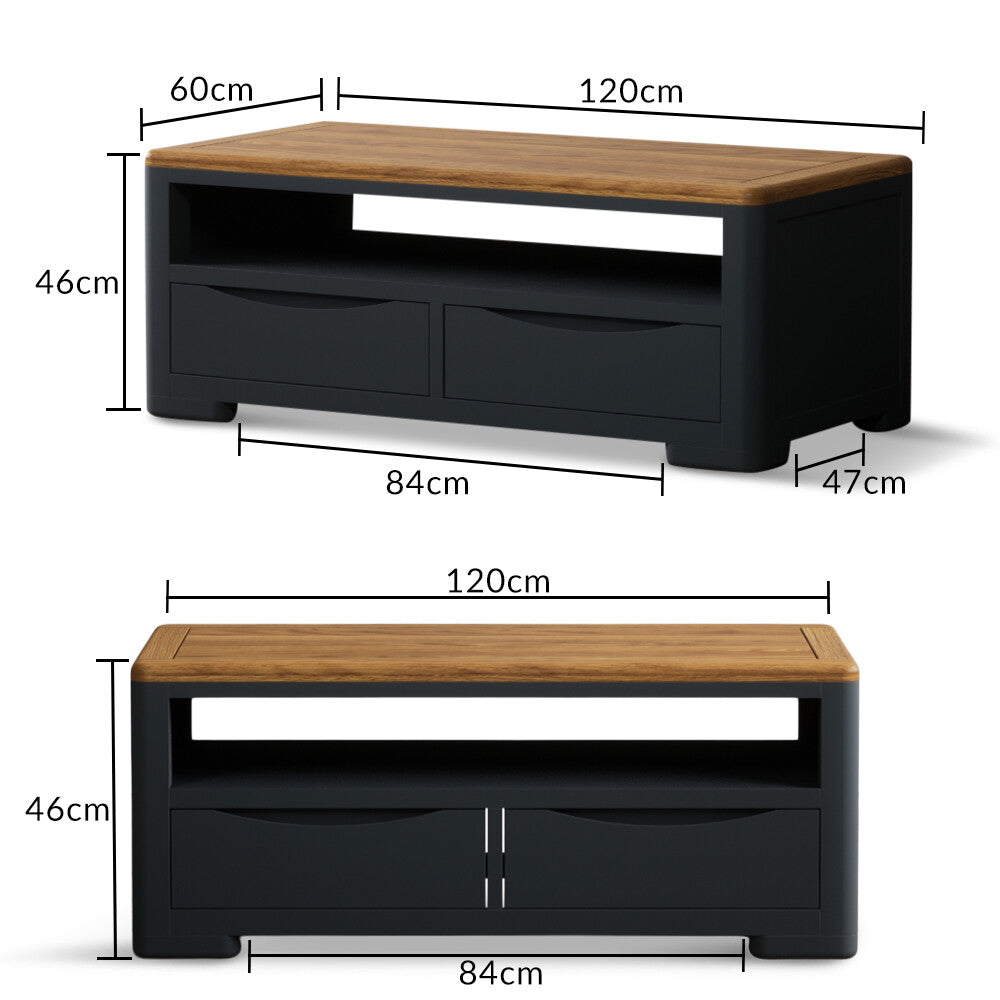 The Blair Oak and Dark Blue Painted Collection is a stunning fusion of modern design and sturdy build. Every item features a dark blue painted solid hardwood frame and natural 100% solid oak top - a modern take on that classic two-toned look.