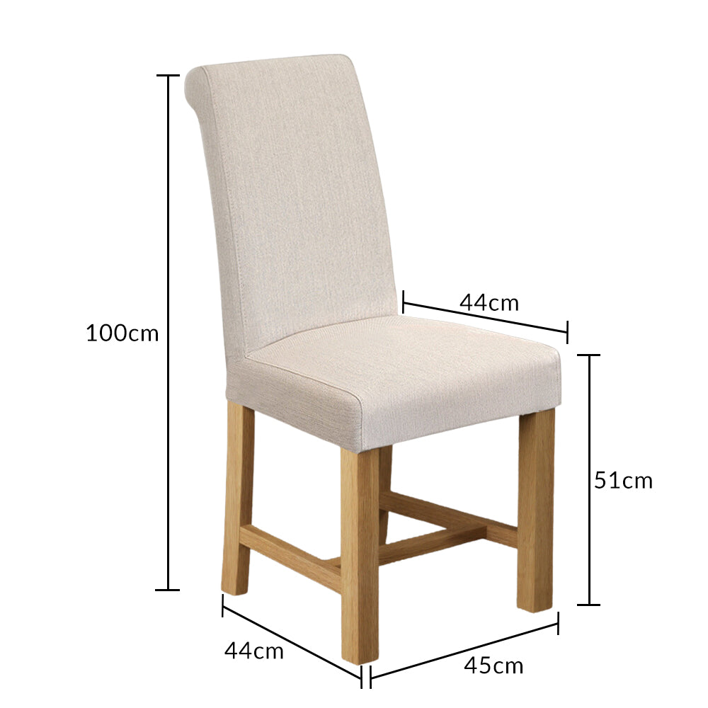 The Scroll Back Braced Dining Chairs are a stunning addition to your oak dining table. With luxe fabric upholstery and a chic scrolled back design, the chairs are complete with sturdy braced solid oak legs.