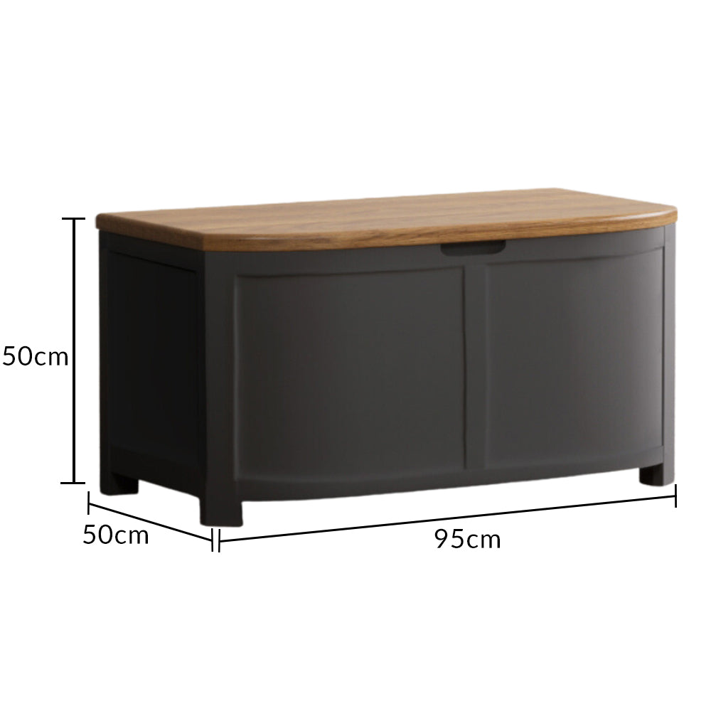 Beautifully modern, the Brahms Blanket Box features a sturdy solid hardwood frame with a smooth grey painted finish, topped with 100% solid oak.