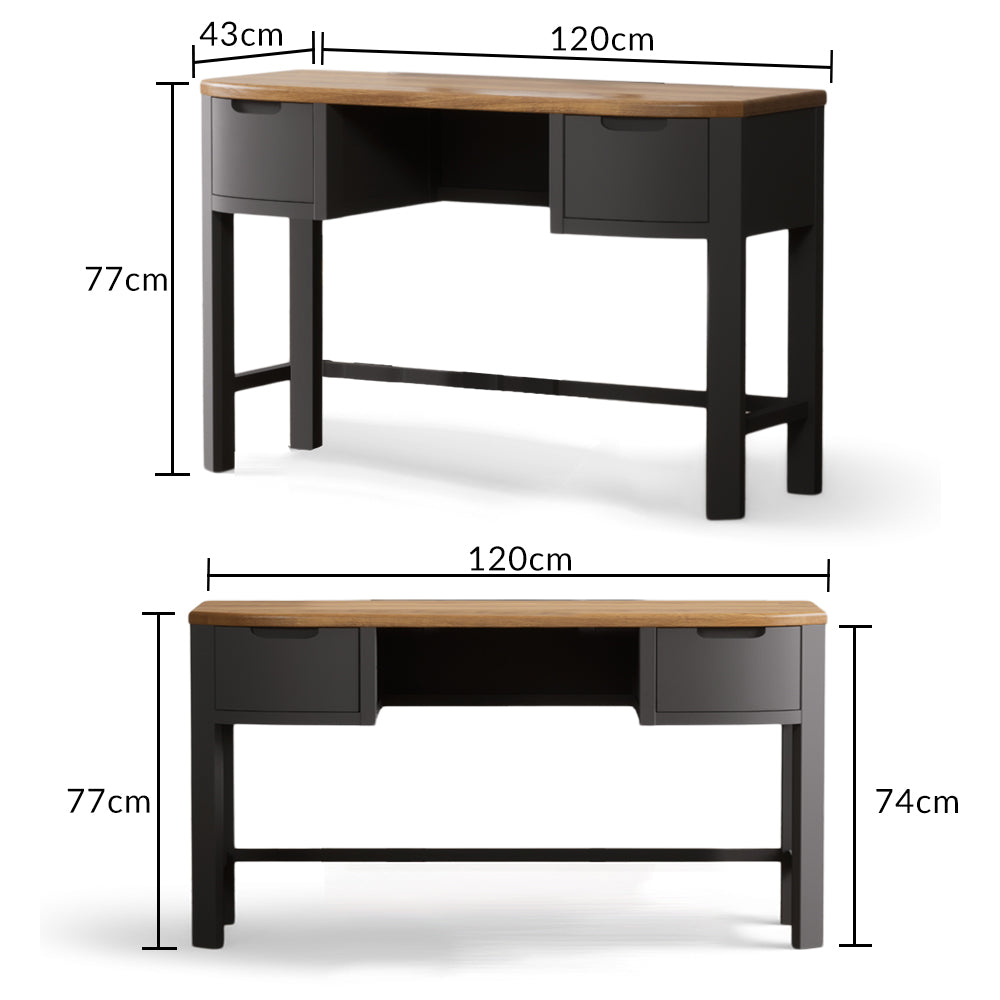 Beautifully modern, the Brahms Dressing Table features a sturdy solid hardwood frame with a smooth grey painted finish, topped with 100% solid oak.