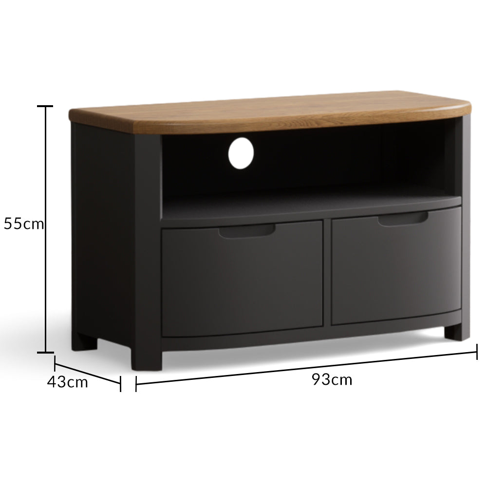 Beautifully modern, the Brahms TV Unit features a sturdy solid hardwood frame with a smooth grey painted finish, topped with 100% solid oak.