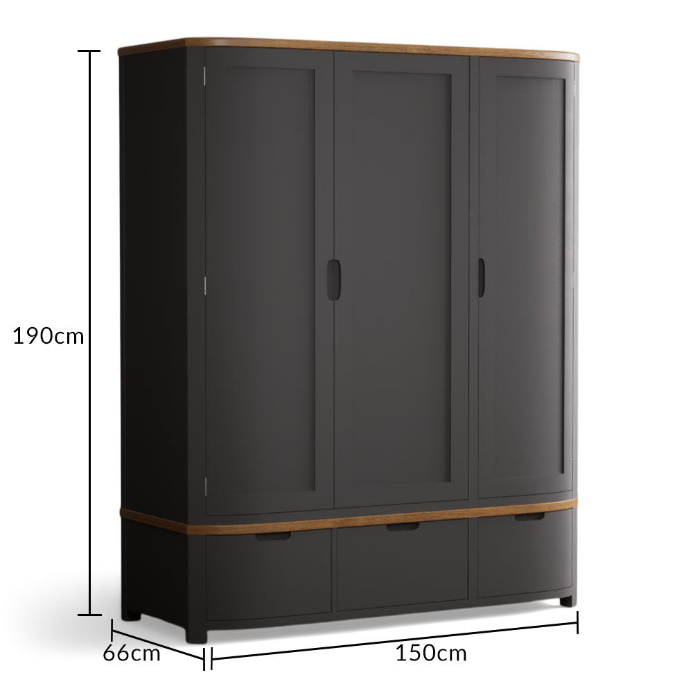 Brahms Oak and Charcoal Painted Triple Wardrobe