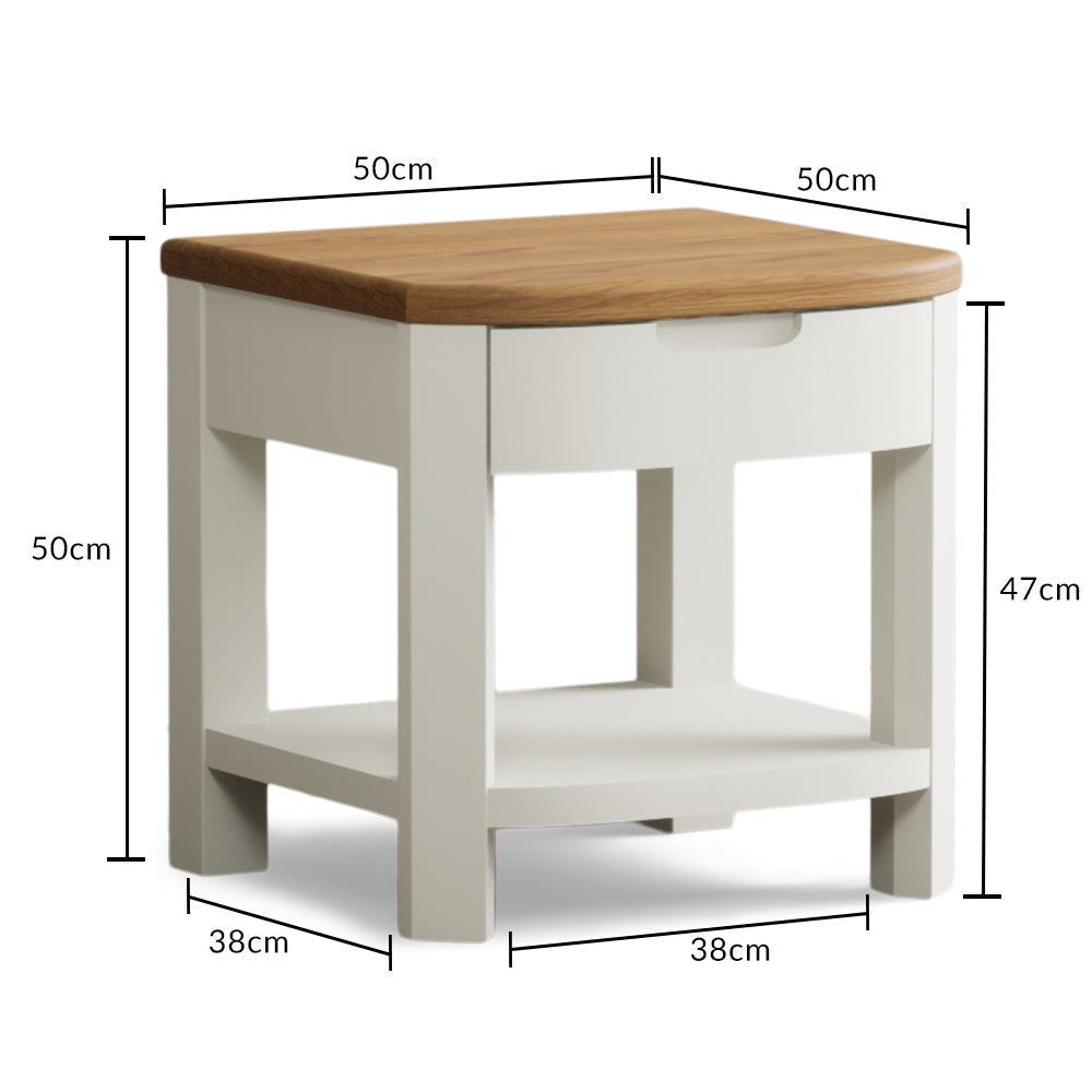 Brahms Oak and Signal White Painted 1 Drawer Lamp Table