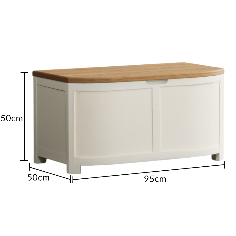 Beautifully modern, the Brahms Blanket Box features a sturdy solid hardwood frame with a smooth white painted finish, topped with 100% solid oak.