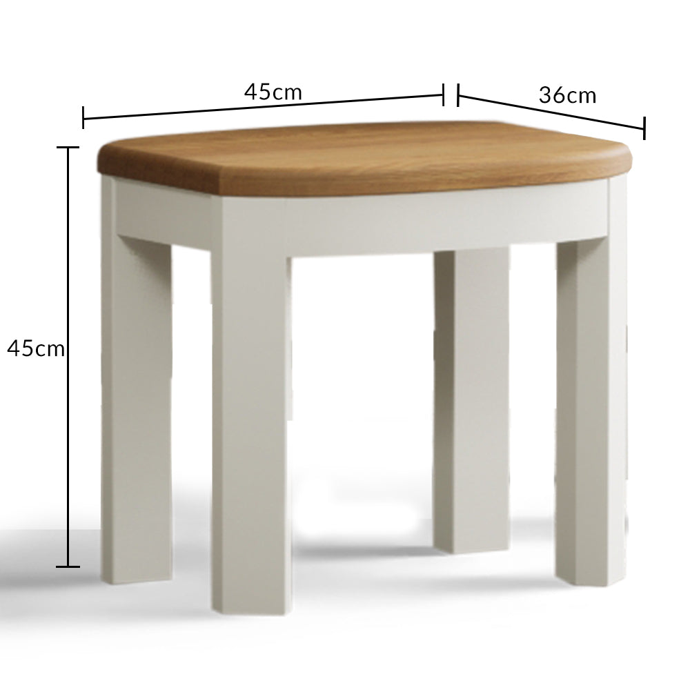 Beautifully modern, the Brahms Dressing Stool features a sturdy solid hardwood frame with a smooth white painted finish, topped with 100% solid oak.