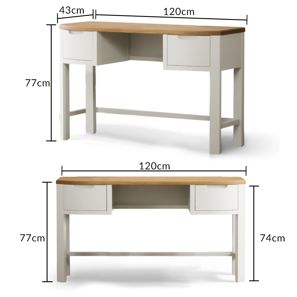 Beautifully modern, the Brahms Dressing Table features a sturdy solid hardwood frame with a smooth white painted finish, topped with 100% solid oak.