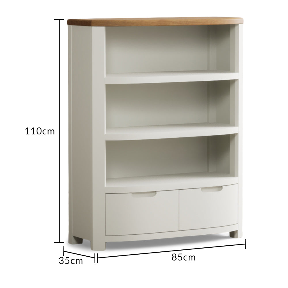 Beautifully modern, the Brahms Bookcase features a sturdy solid hardwood frame with a smooth white painted finish, topped with 100% solid oak.