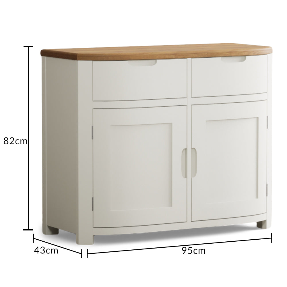 Beautifully modern, the Brahms Sideboard features a sturdy solid hardwood frame with a smooth white painted finish, topped with 100% solid oak.