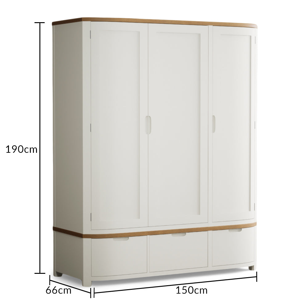 Brahms Oak and Signal White Painted Triple Wardrobe