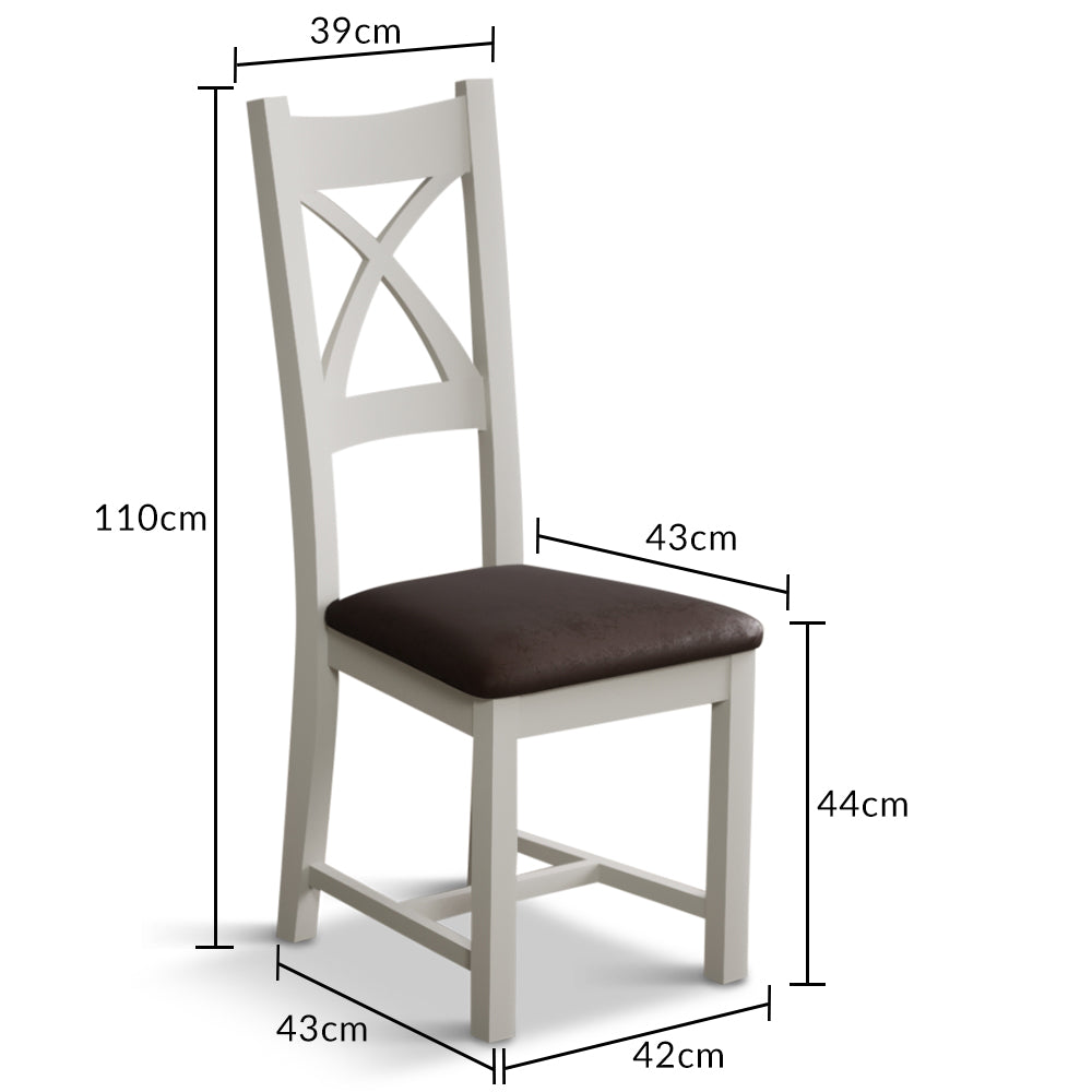The Crossley Signal White X Back Chair with Chocolate Brown Fabric Seat Pad is a beautifully crafted, sturdy dining chair. Crafted from durable solid hardwood, the white-painted chair features a classic cross design on the backrest and is complete with a comfortable seat pad with smooth brown fabric upholstery. A stunning addition to your white-painted or natural oak dining table.