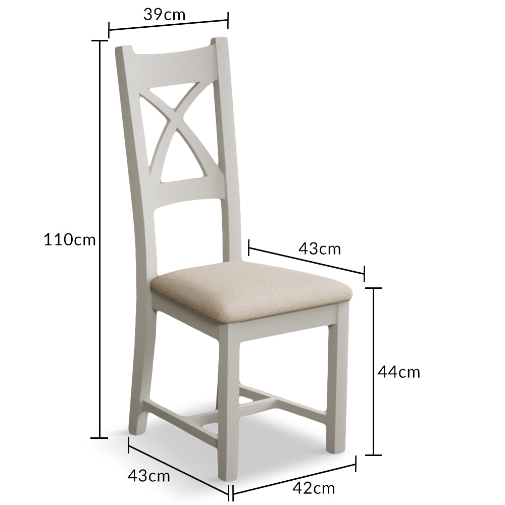 The Crossley Signal White X Back Chair with Linen Fabric Seat Pad is a beautifully crafted, sturdy dining chair. Crafted from durable solid hardwood, the white-painted chair features a classic cross design on the backrest and is complete with a comfortable seat pad with smooth linen fabric upholstery. A stunning addition to your white-painted or natural oak dining table.