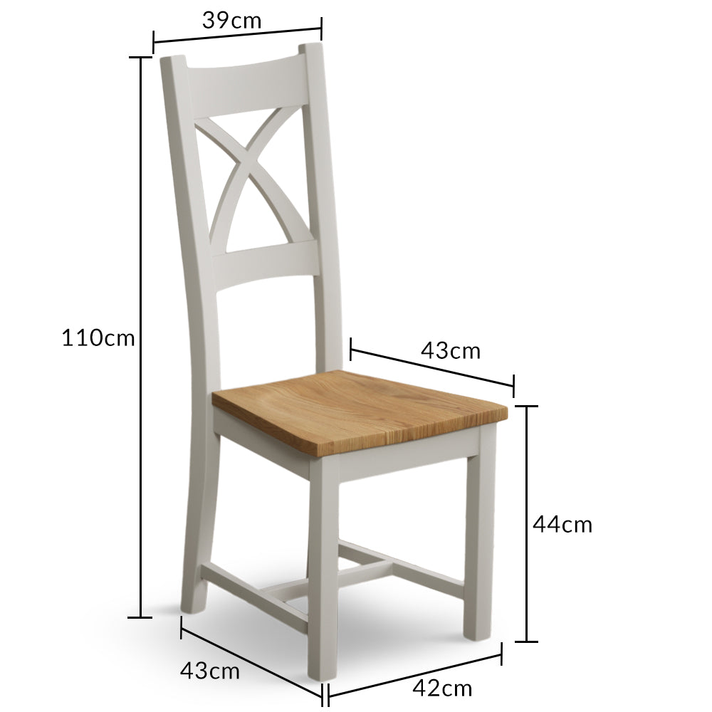 The Crossley Signal White X Back Chair with Oak Seat Pad is a beautifully crafted, sturdy dining chair. Crafted from durable solid hardwood, the white-painted chair features a classic cross design on the backrest and is complete with a comfortable oak seat pad. A stunning addition to your white-painted or natural oak dining table.
