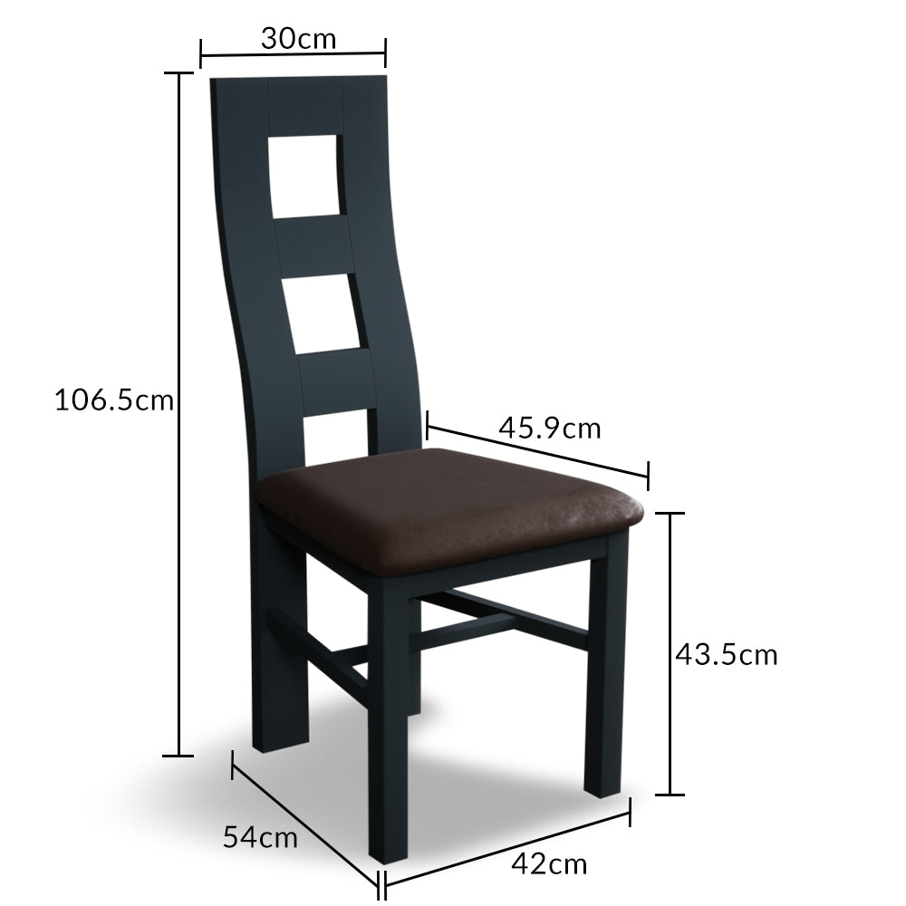The Painted Dark Blue Flow Back Dining Chairs are a stunning addition to your oak dining table. Crafted from 100% solid hardwood, the chairs feature a dark blue painted finish and elegant curved backrest.
