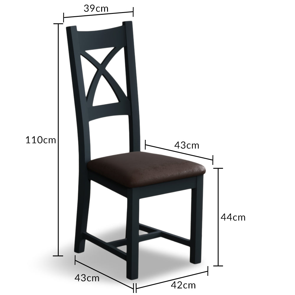The Painted Dark Blue X Back Dining Chairs are a stunning addition to your oak dining table. Crafted from 100% solid hardwood, the chairs feature a dark blue painted finish and classic cross design on the backrest.
