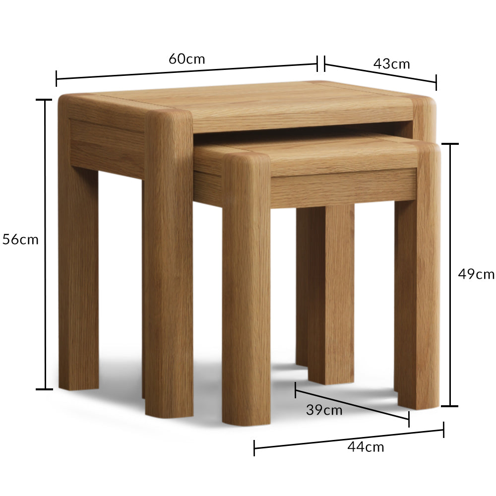 A blend of timeless design and modern style, the Dereham Solid Oak Nest Of Tables is effortlessly stylish. Carefully crafted from robust 100% solid oak with no veneer, MDF or chipboard, this range suits any space.
