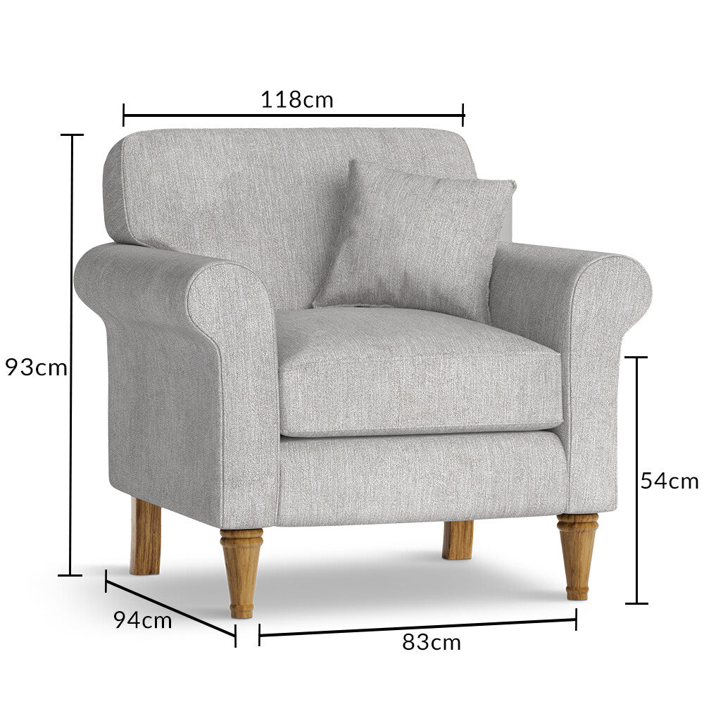 With beautifully soft fabric, the Devonshire collection features classic rolled arms and generous seat and back cushions for the ultimate in comfort and style. Complete with turned wooden feet with a natural finish that highlights the grain.