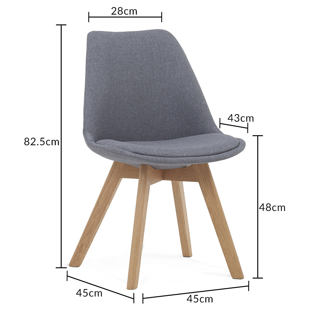 The Duke Dark Grey Fabric Dining Chairs (Pair) This collection offers a cushy ergonomic seat supported by wooden legs. Lovely around a table or as a desk chair.