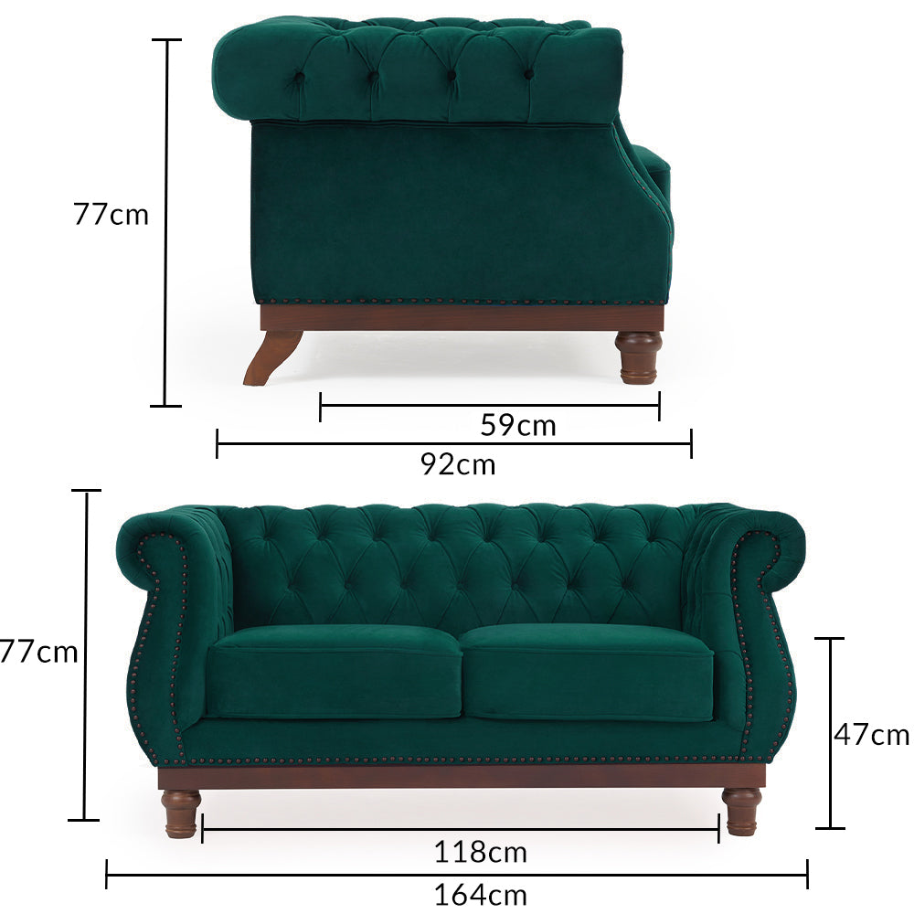 Eton Chesterfield Green Velvet 2 Seater Sofa