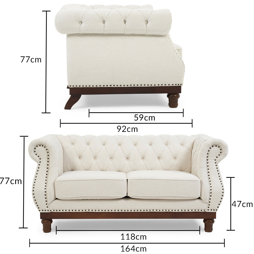 Eton Chesterfield Ivory Linen Fabric 2 Seater Sofa