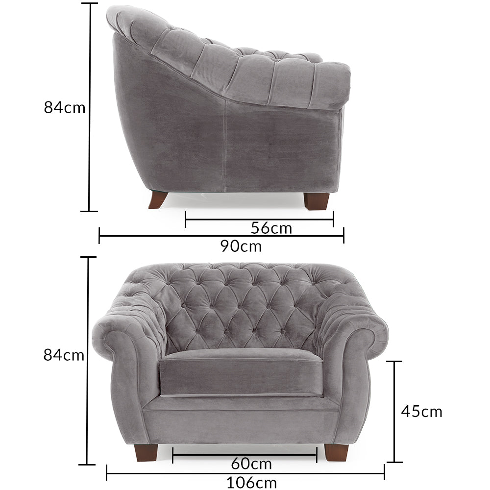 Eva Chesterfield Light Grey Velvet Armchair