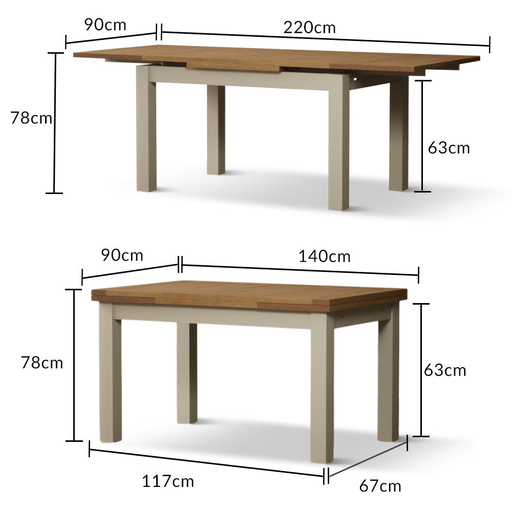 Extending Romney 140cm Oak and Cream Painted Dining Table