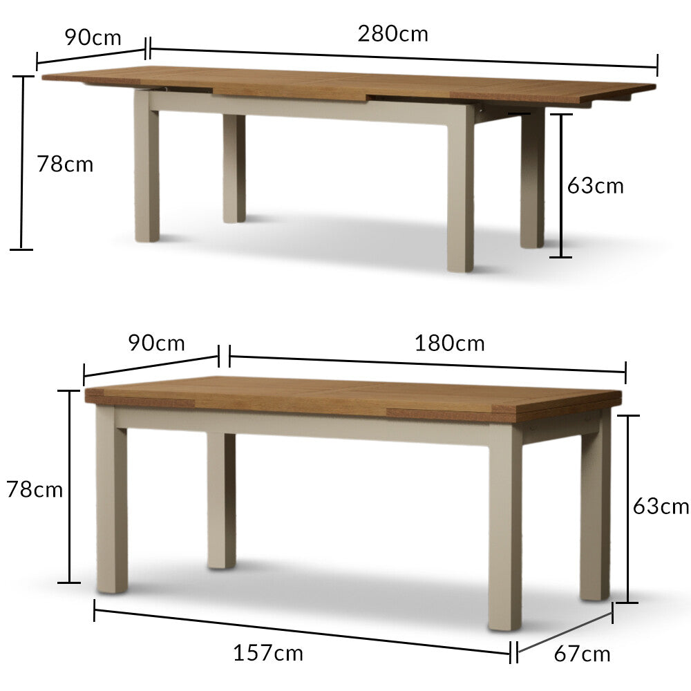 Extending Romney 180cm Oak and Cream Painted Dining Table