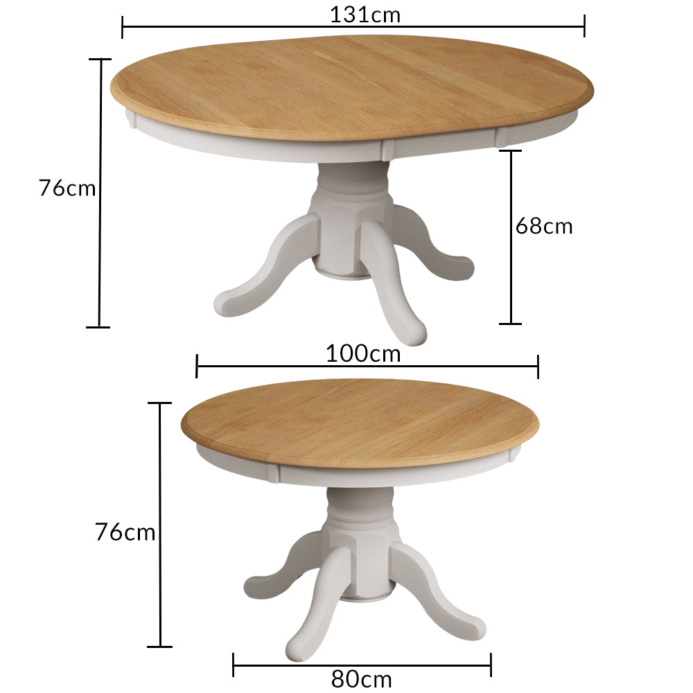 Extending Whatley Oak and Soft White Painted Pedestal Dining Table