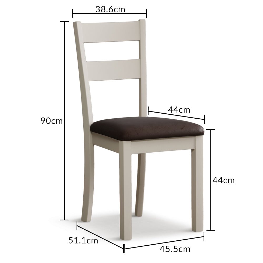 The Faversham Cream Painted Chair with Chocolate Brown Fabric Seat Pad is a sturdy, stylish dining chair with a classic laddered-back design. Crafted from durable solid hardwood, the Faversham chair features a smooth cream-painted finish and is complete with a comfortable seat pad with chocolate brown fabric upholstery. Match the chair with your cream-painted or natural solid oak dining table.
