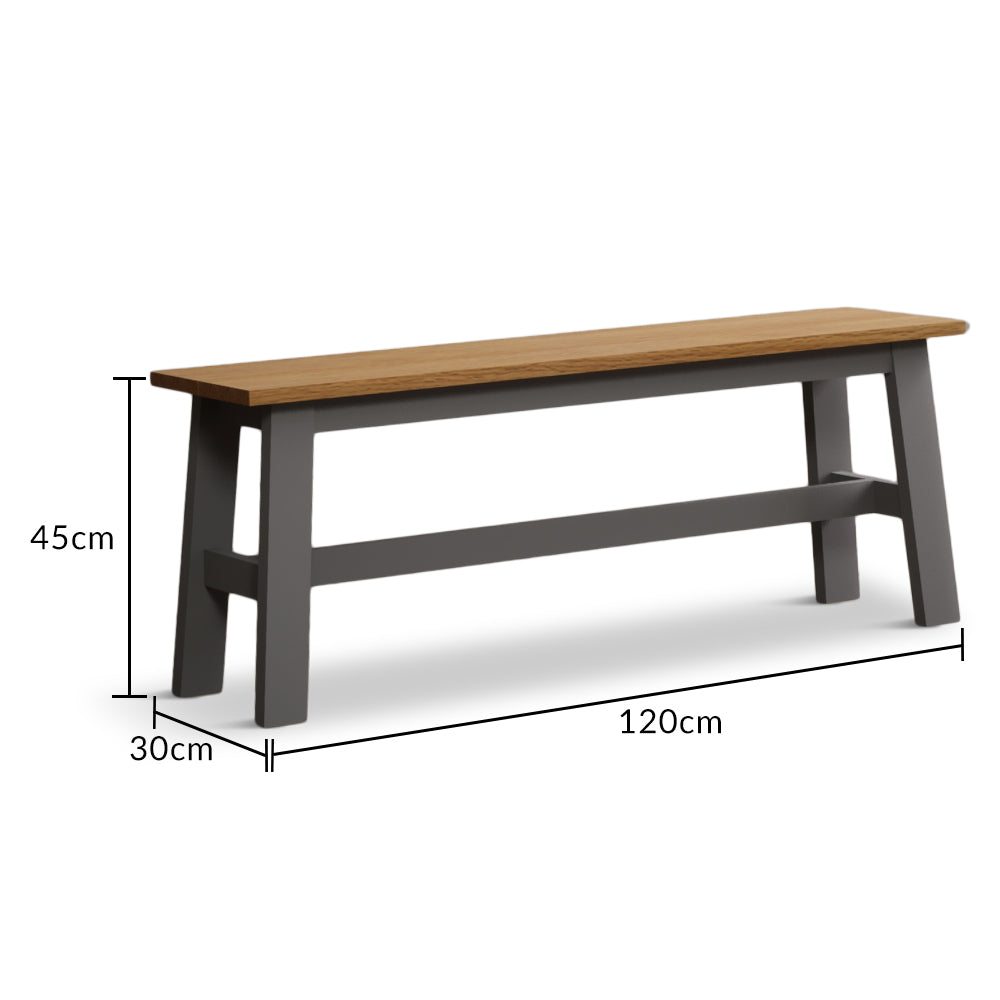 The Faversham Large Solid Oak and Light Grey Painted Bench combines painted solid hardwood and natural solid oak, for a beautiful two-toned finish that suits every home. The perfect match for your painted or natural oak dining table, the large bench features sturdy light grey-painted solid hardwood legs and a smooth solid oak seat.