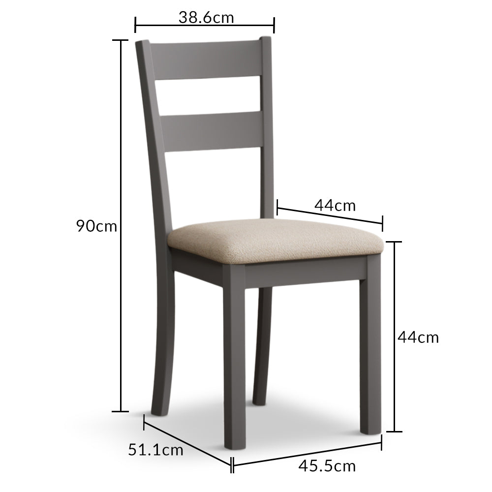 The Faversham Light Grey Painted Chair is a sturdy, stylish dining chair with a classic laddered-back design. Crafted from durable solid hardwood, the Faversham chair features a smooth light grey-painted finish and is complete with a comfortable seat pad. Match the chair with your grey-painted or natural solid oak dining table.