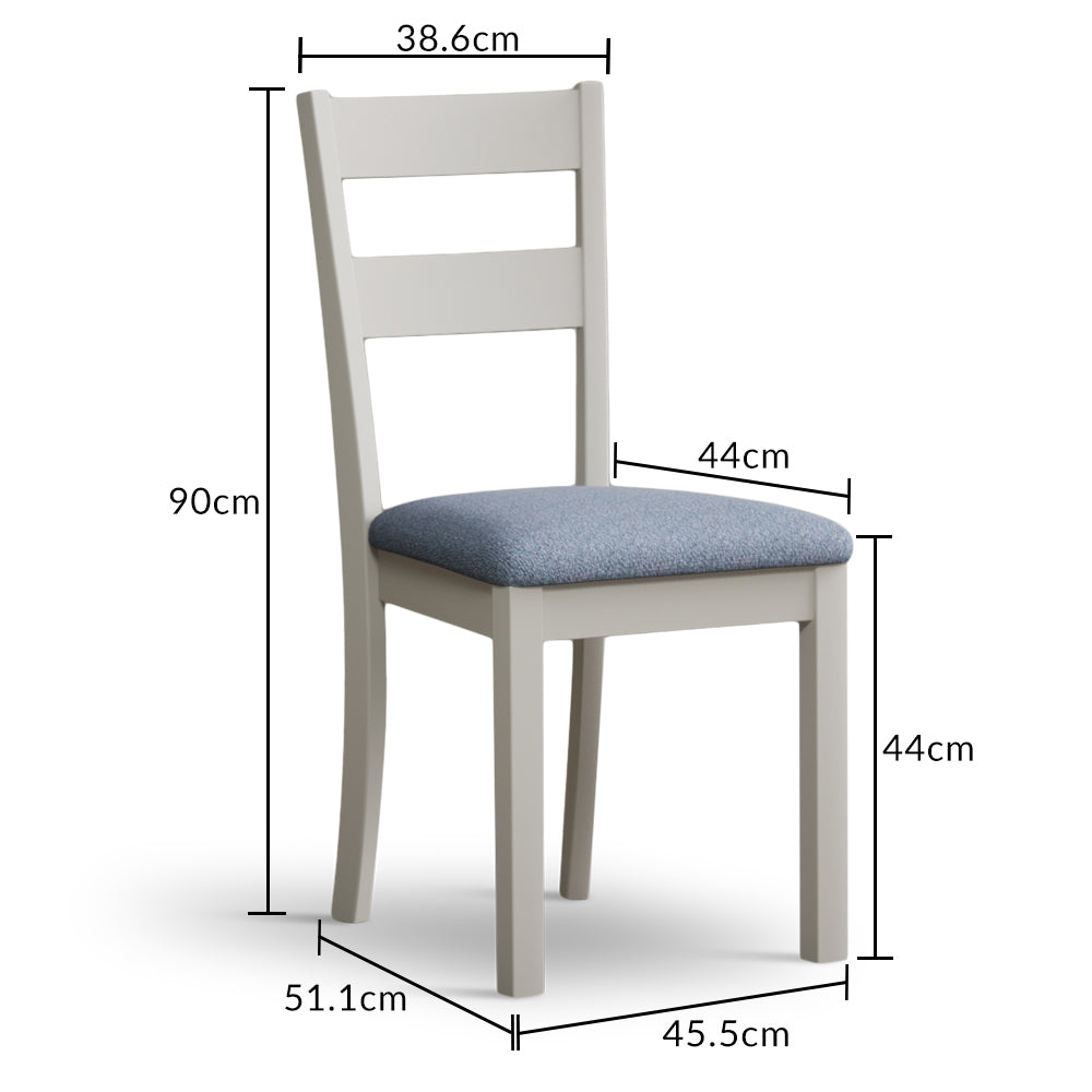 The Faversham Signal White Painted Chair with Sky Blue Fabric Seat Pad is a sturdy, stylish dining chair with a classic laddered-back design. Crafted from durable solid hardwood, the Faversham chair features a smooth white-painted finish and is complete with a comfortable sky blue fabric seat pad. Match the chair with your white-painted or natural solid oak dining table.