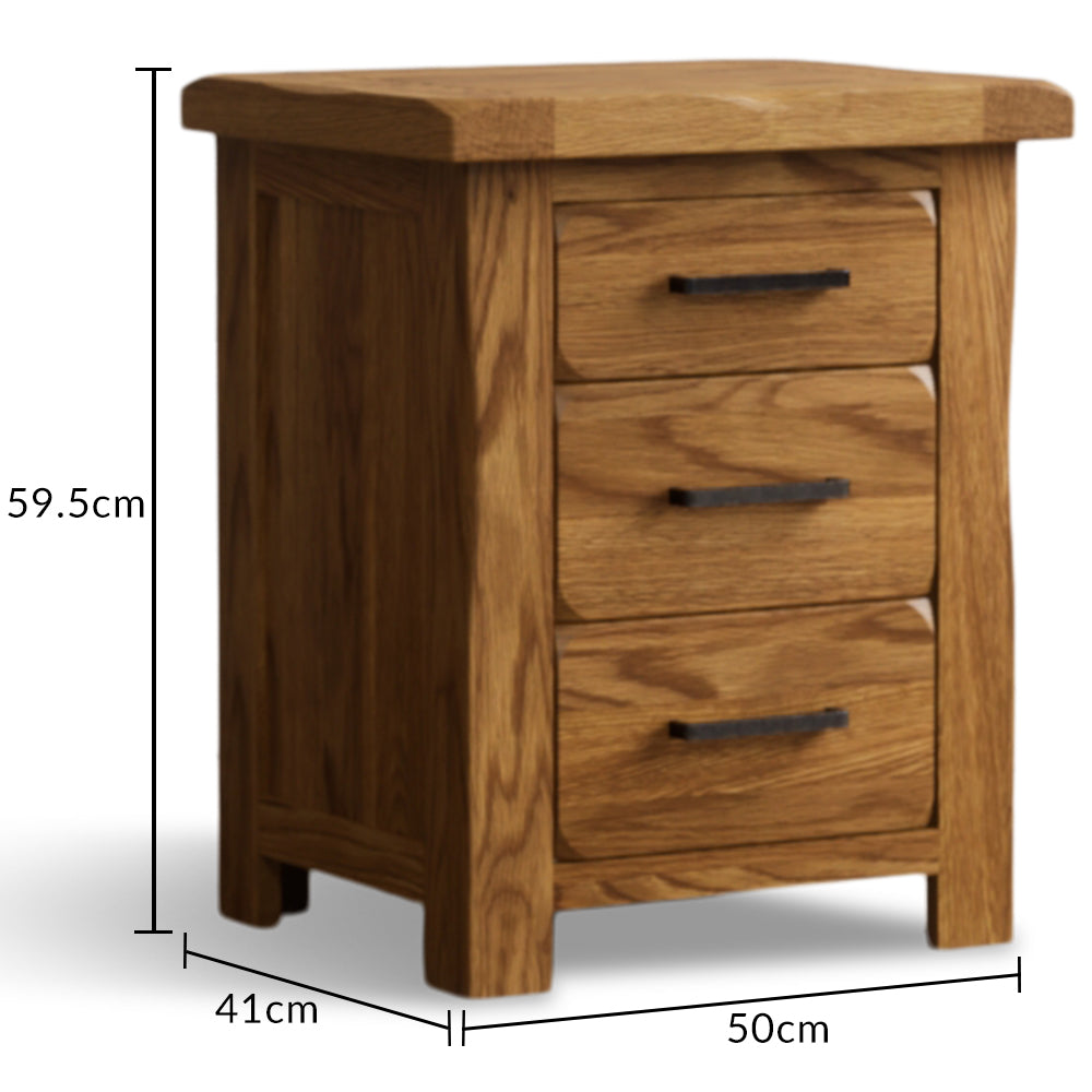 Harleston Rustic Solid Oak 3 Drawer Bedside Table