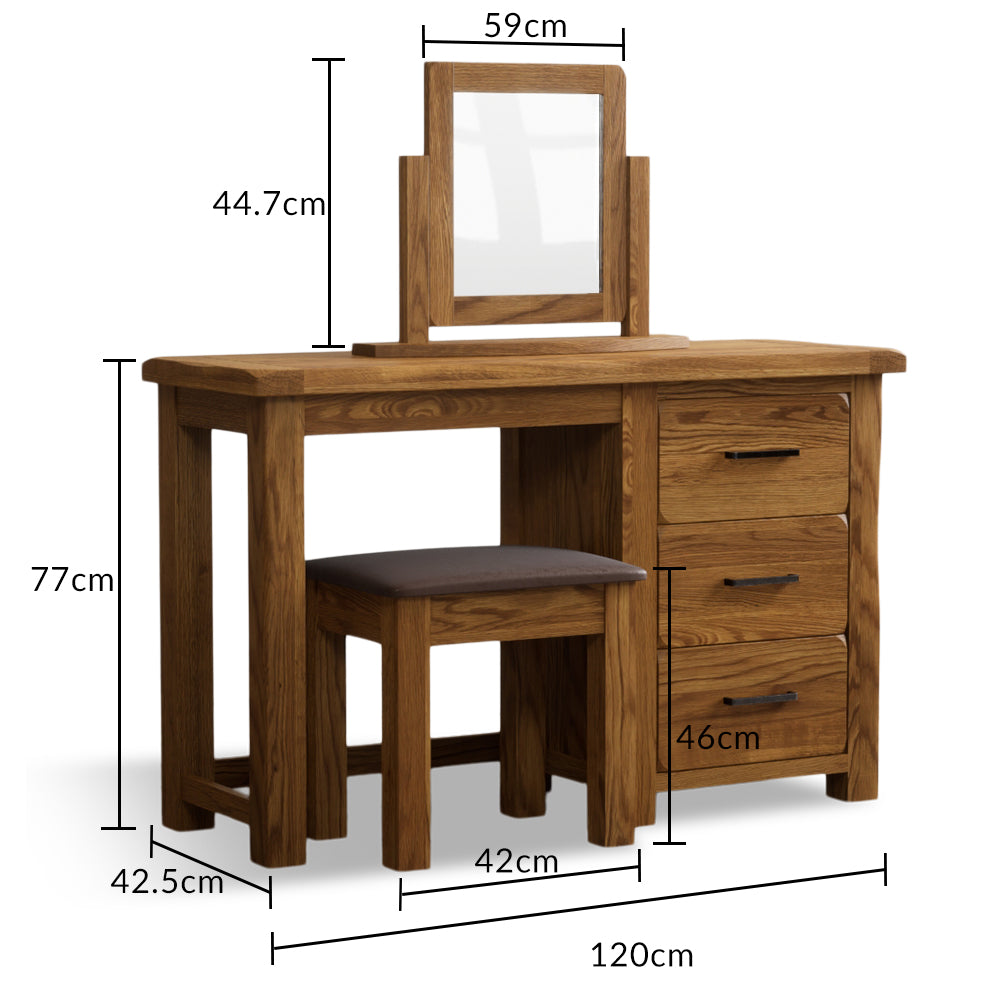 Harleston Rustic Solid Oak 3 Drawer Dressing Table Set