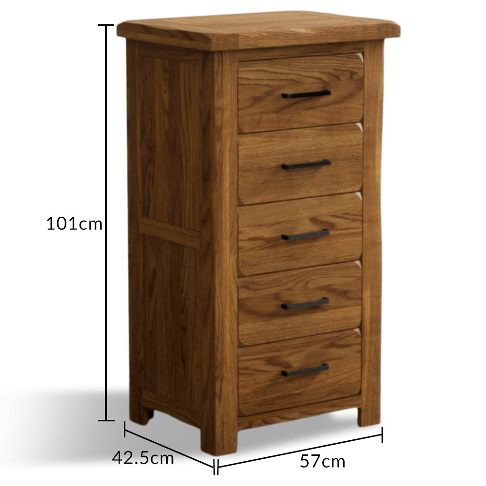 Harleston Rustic Solid Oak 5 Drawer Tallboy