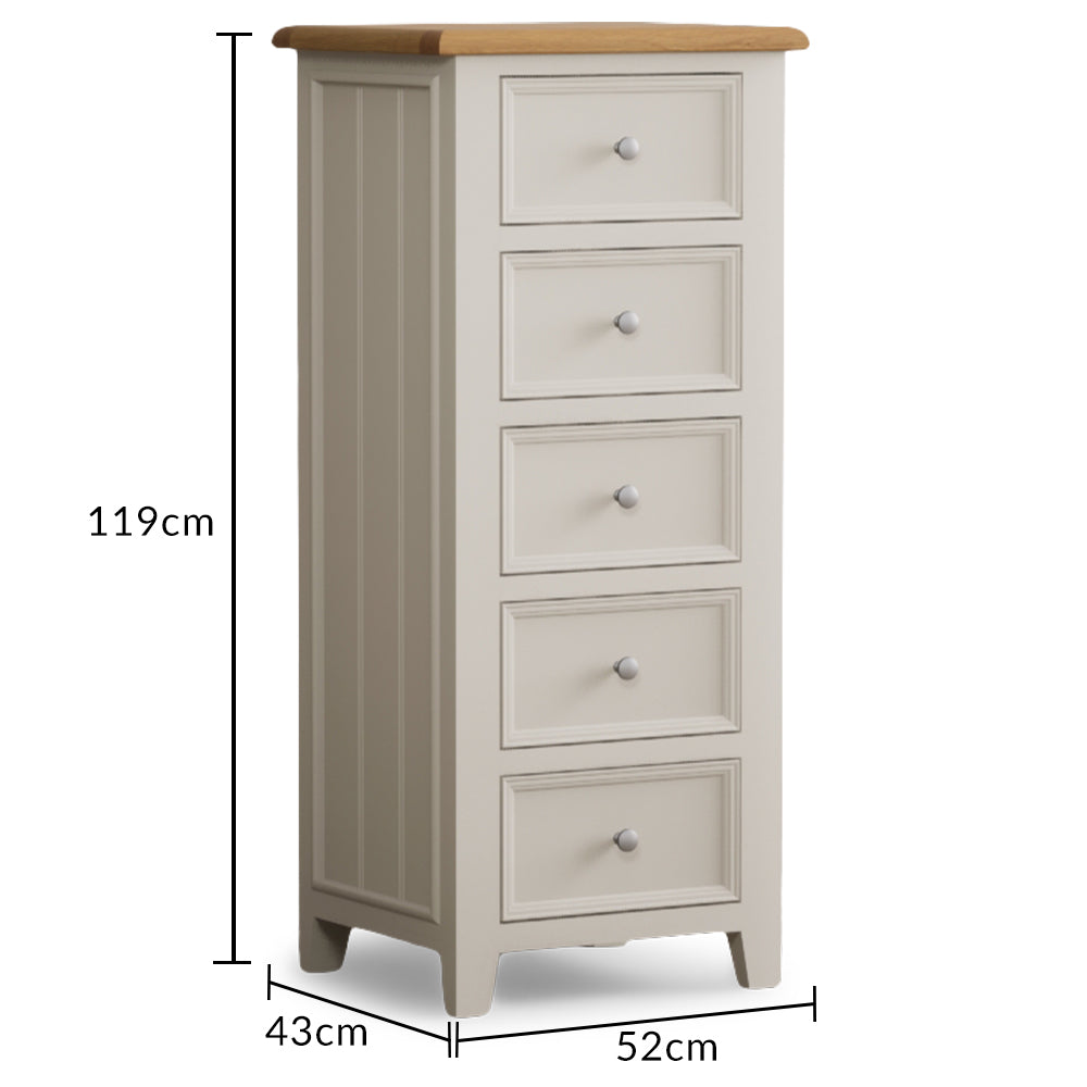 Hemsby Oak and Soft White Painted 5 Drawer Tallboy