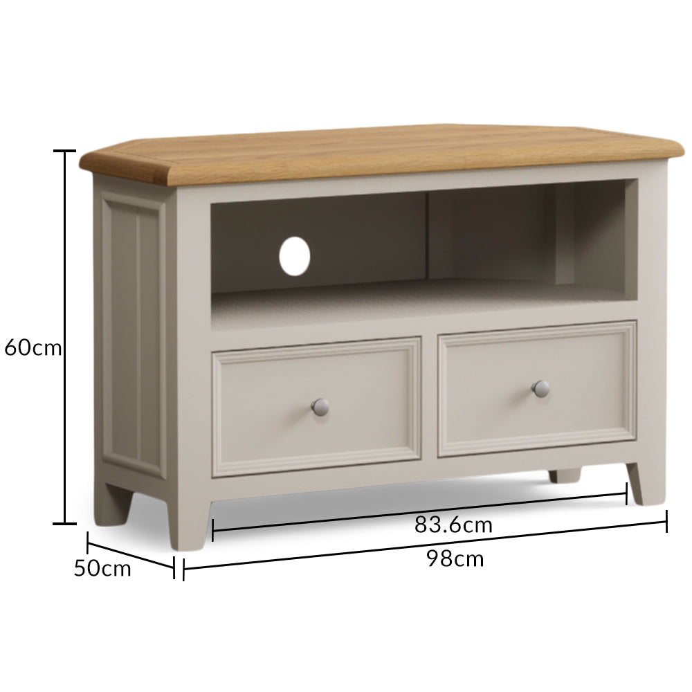 Hemsby Oak and Soft White Painted Corner TV Cabinet