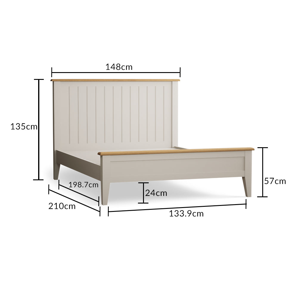 Crafted using traditional methods, the Hemsby Double Bed features a durable solid hardwood frame with a smooth soft white painted finish, topped with 100% solid oak.