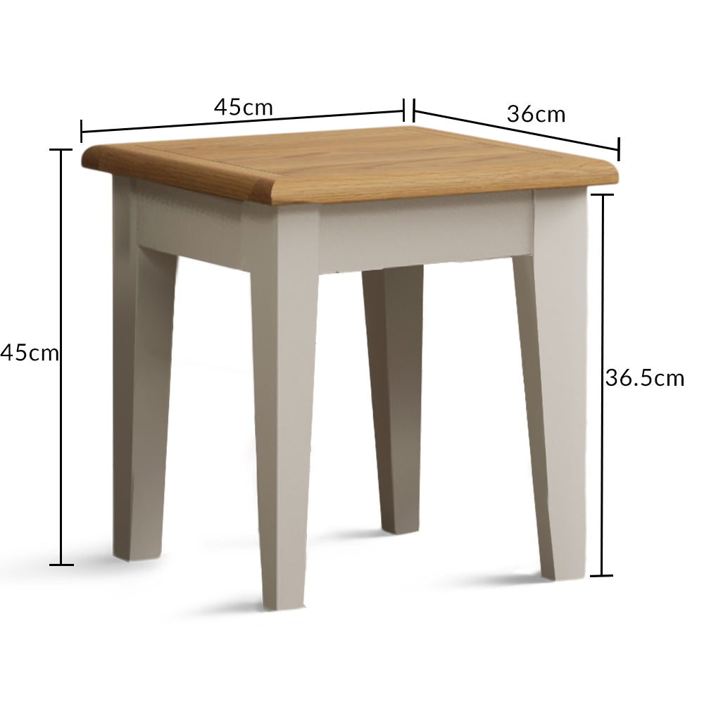 Crafted using traditional methods, the Hemsby Stool features a durable solid hardwood frame with a smooth soft white painted finish, topped with 100% solid oak.